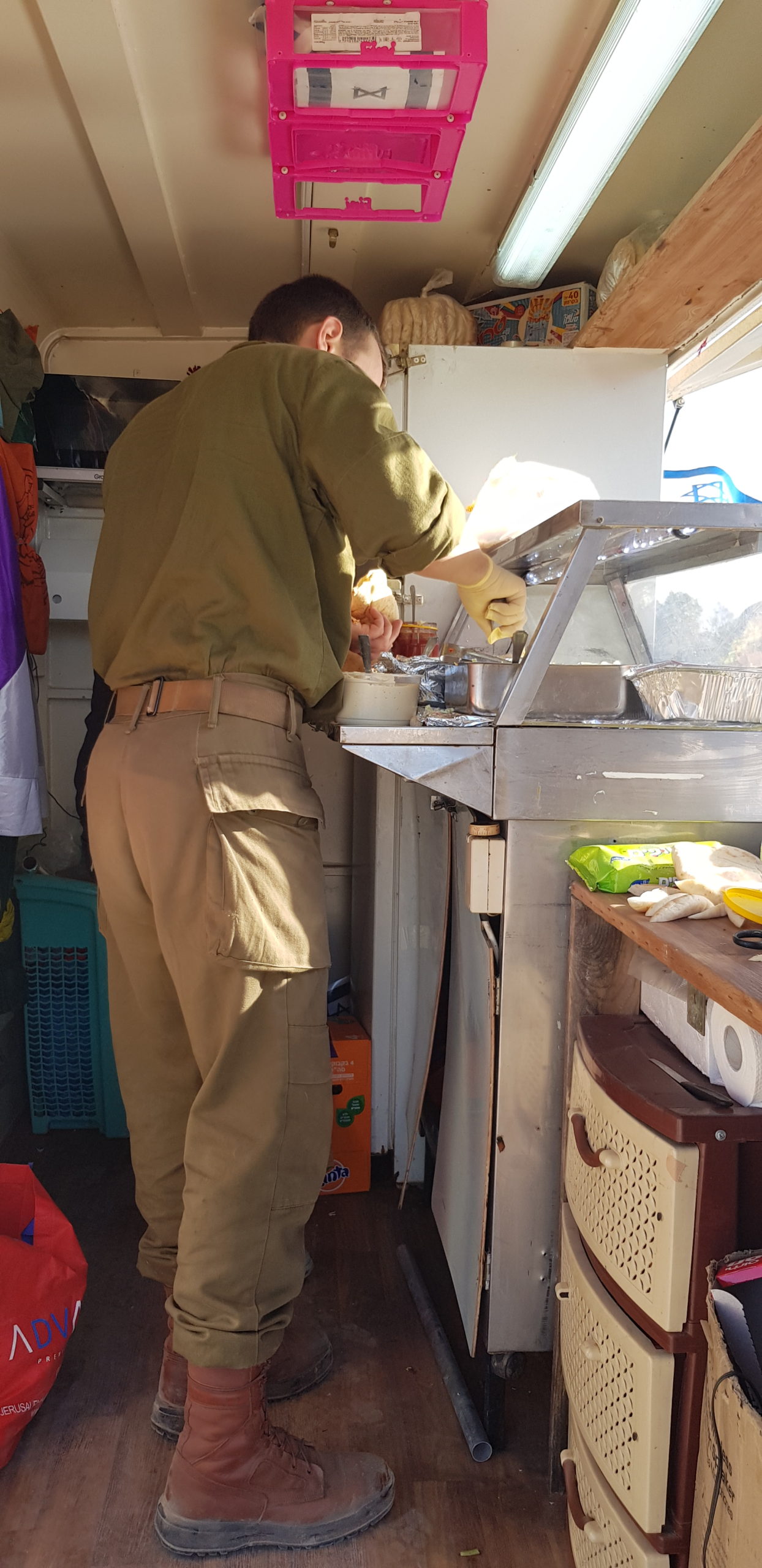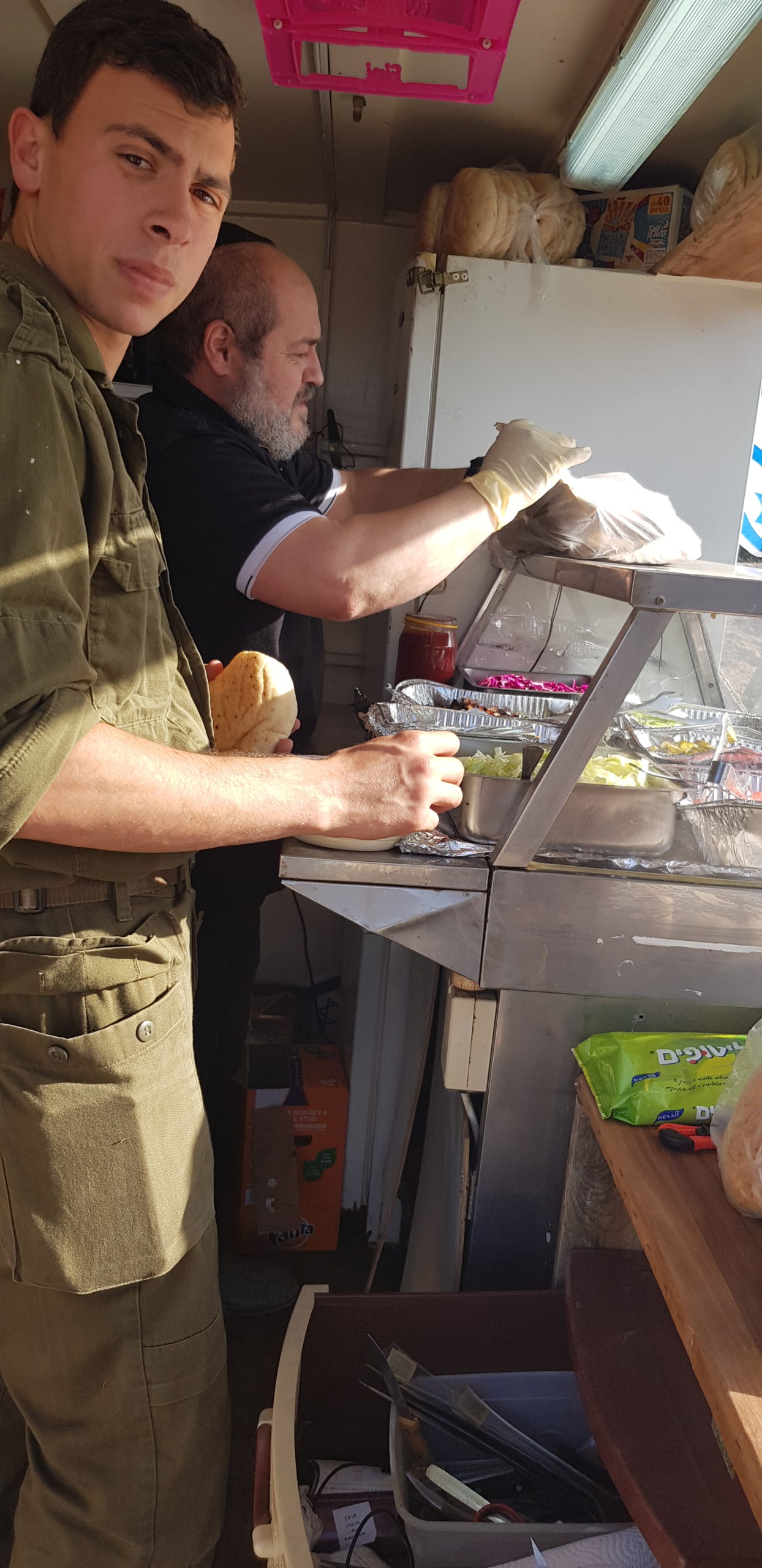 Dan, responsable de la Roulotte du Hayal. Novembre 2018 : La Roulotte du Hayal offre une centaine de pitot à nos soldats en bordure de Gaza