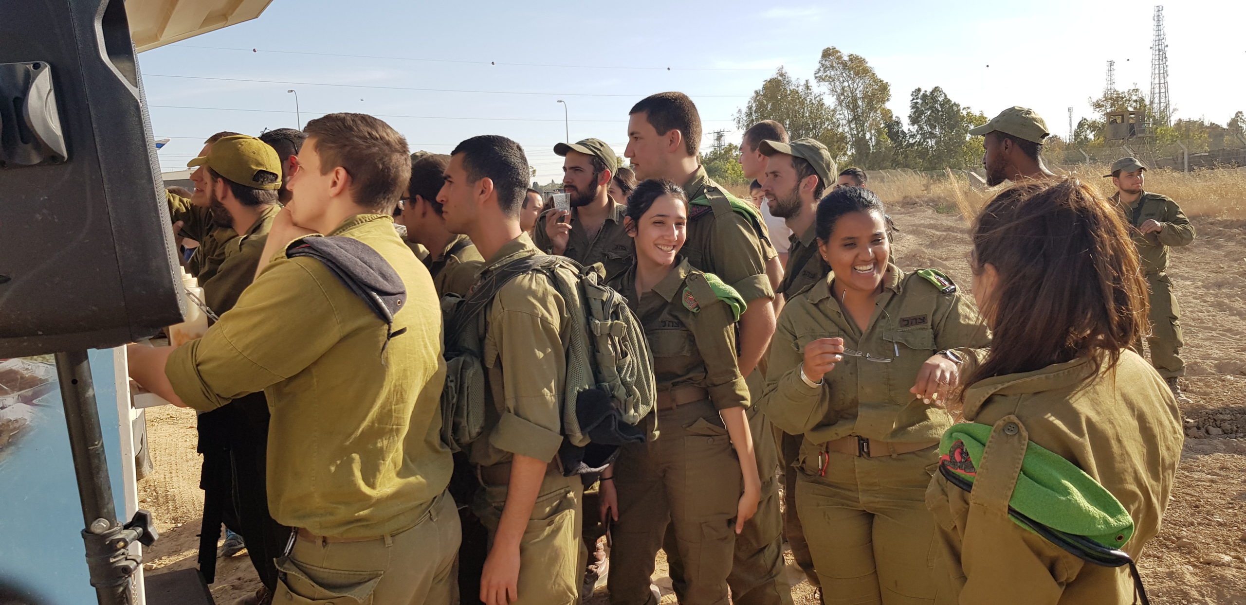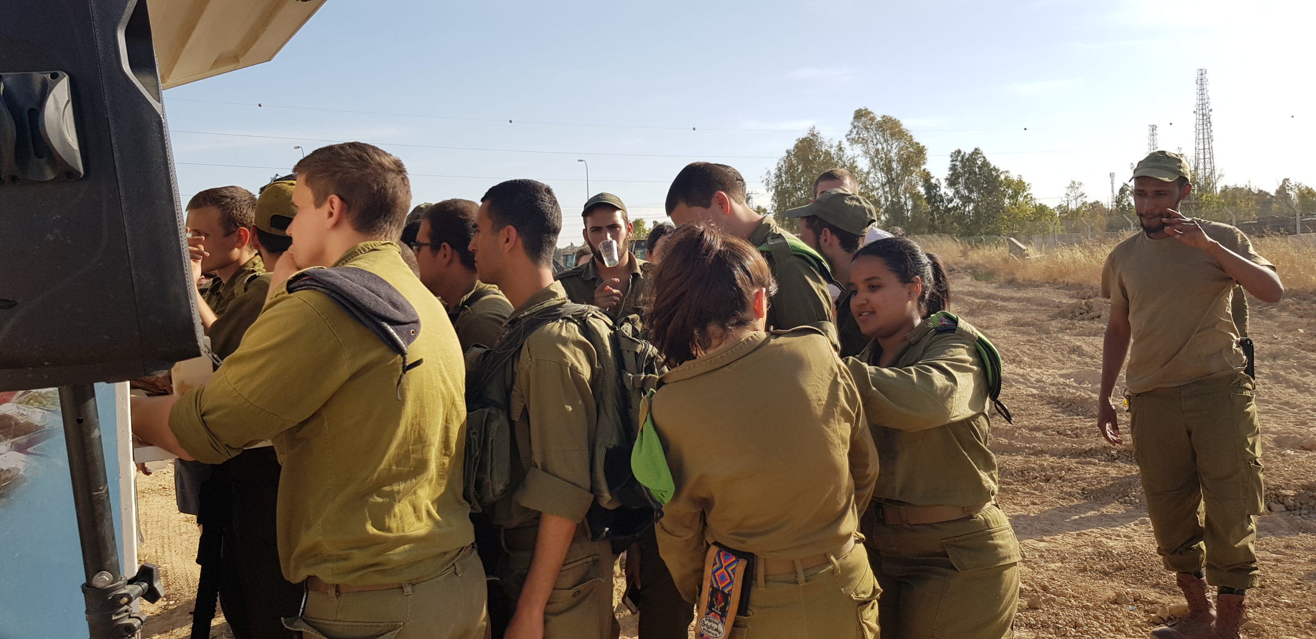 Février 2018 | La Roulotte du Hayal offre des Michloah Manot aux soldats combattants de Nahal Oz