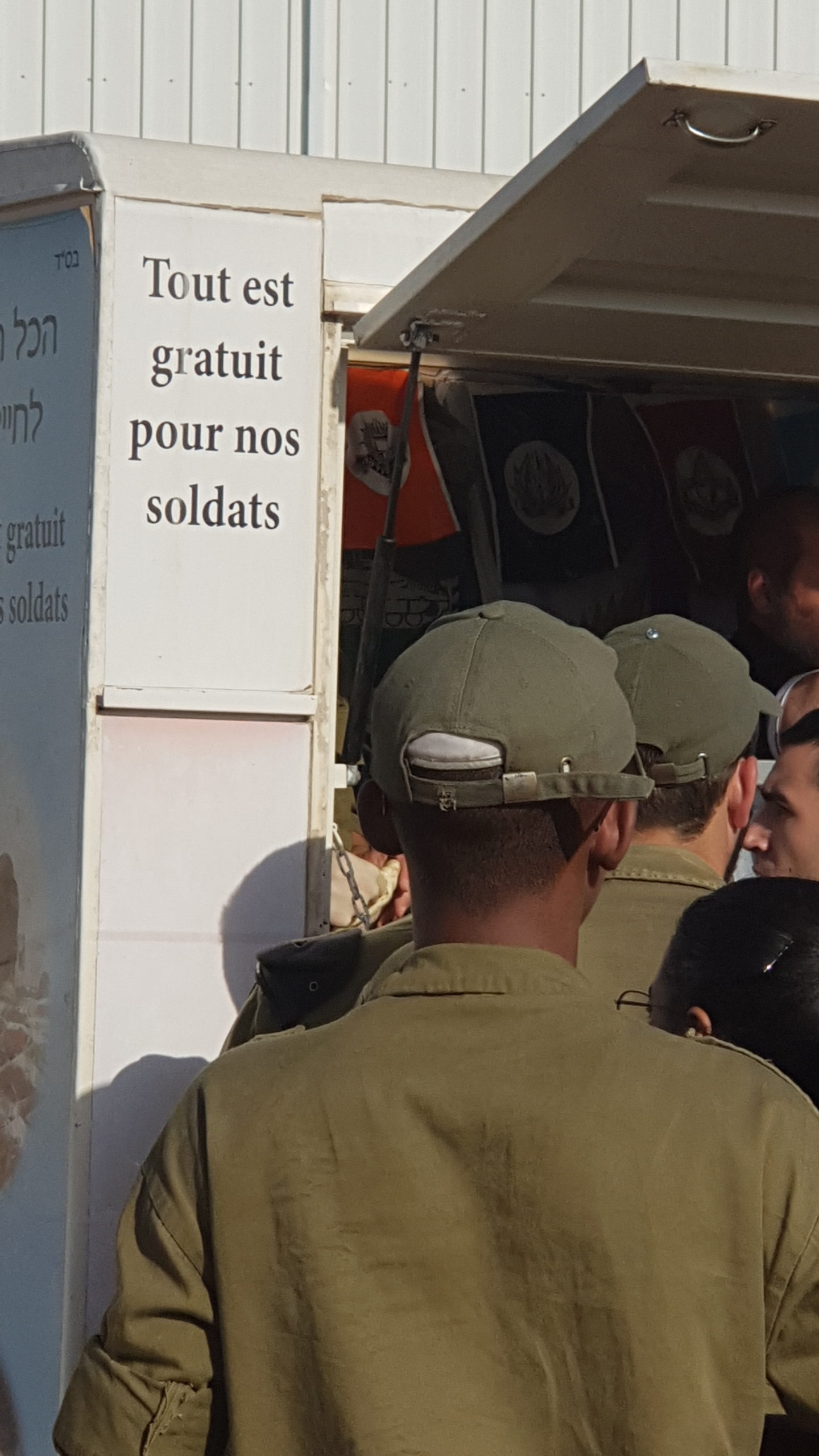 La situation en bordure de Gaza ne nous permet pas toujours de faire plaisir à nos merveilleux soldats mais ce dimanche 5 novembre 2018, les bénévoles de la Roulotte du Hayal ont offert 100 pitots felafels.